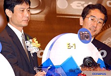 OLYMPUS在港推出新產品。OLYMPUS香港中國有限公司,七月十一日在香港舉行新產品推介會,推出最新四款產品,其中有400萬像素全天候數碼相機、E-1數碼單鏡反光機及相關配件等。中新社記者:錢興強