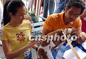 香港愛護動物協會七月十三日在香港舉行“寶寶健康快樂之星選舉”,由專業獸醫和知名人士擔任評判,香港歌星莫文蔚和藝員陳啟泰擔任嘉賓評判。中新社記者:錢興強