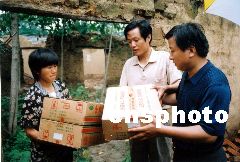 受災地區各級黨政機關部門領導紛紛向災民送上慰問品。周一渤 攝