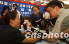 廣受關注的中國民航價格聽證會七月十五日在北京舉行,來自各地的消費者、經營者及有關方面代表將對民航運價改革工作小組起草的《民航國內航空運輸價格改革方案》進行公開論證。中新社記者:武仲林
