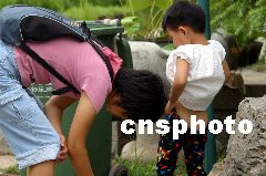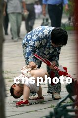 在非典肆虐時,山東濟南市民對隨地吐痰、隨地大小便、當眾挖鼻孔、打噴嚏等陋習的認識空前深刻,使得這些陋習一度有絕跡的傾向。但隨著非典被有效控制后,一些人便“好了傷疤忘了疼”,再不把陋習當回事了。圖為2003年7月15日,在濟南大明湖、泉城,廣場和濟南金街泉城路上,一些帶小孩的家長,在任意場合讓小孩隨地小便。郭光耀 攝