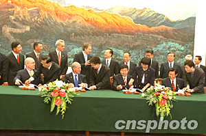 會談后,溫家寶和布萊爾出席了關于組建青島前港集裝箱碼頭有限責任公司合資合同的簽字儀式,并共同會見了英方隨行企業界人士。