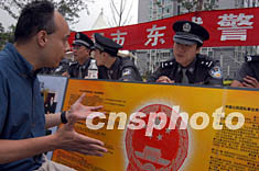 北京東城警方七月二十一日為轄區(qū)內(nèi)的外國友人提供中國法律等相關(guān)咨詢服務(wù),樹立良好的中國警察形象。中新社記者:任海霞