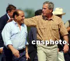 相關(guān)報(bào)道:意大利總理貝盧斯科尼抵美 德州農(nóng)場(chǎng)會(huì)布什 (2003-07-21 15:12:55)