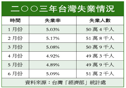 相關報道:救助措施治標不治本 臺灣不容忽視新一波失業潮 (2003-07-22 13:53:16)