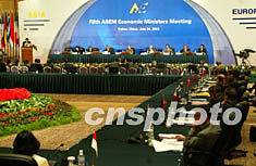 第五屆亞歐經濟部長會議七月二十四日正式在大連開幕。來自亞洲的中國、日本、韓國和東盟七國,歐盟十五國和歐盟委員會出席會議。中新社記者:鄭萍萍