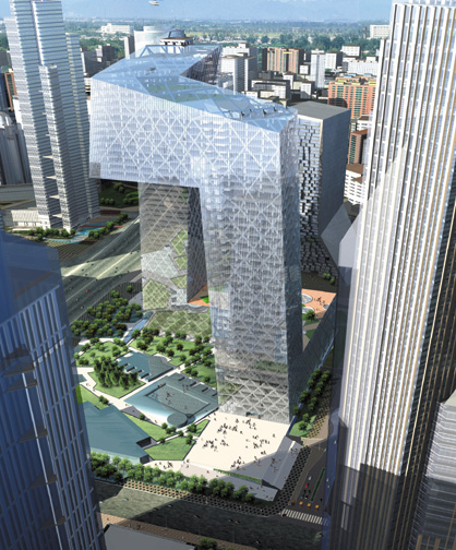 專(zhuān)家評(píng)委認(rèn)為這是一個(gè)不卑不亢的方案,既有鮮明的個(gè)性,又無(wú)排他性。作為一個(gè)優(yōu)美、有力的雕塑形象,它既能代表新北京的形象,又可以用建筑的語(yǔ)言表達(dá)電視媒體的重要性和文化性。其結(jié)構(gòu)方案新穎、可實(shí)施,會(huì)推動(dòng)中國(guó)高層建筑的結(jié)構(gòu)體系、結(jié)構(gòu)思想的創(chuàng)造。