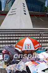 香港超級球迷7月28日忍受烈日煎熬在香港大球場排隊(duì),準(zhǔn)備輪候購買“皇家馬德里”蒞港作賽入場券。作者:洪少葵