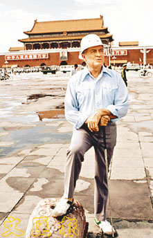 圖為霍普到北京旅游時,在天安門廣場留影。文匯報圖