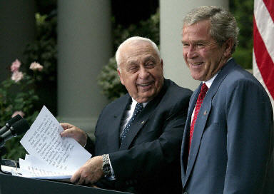 中新網(wǎng)7月30日電 美國總統(tǒng)布什和以色列總理沙龍29日在華盛頓舉行了會(huì)晤,磋商中東和平進(jìn)程的未來。