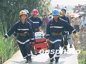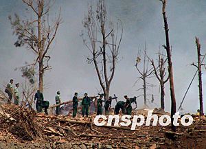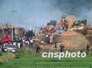 七月三十一日上午七時四十分,福建閩侯縣荊溪鎮一私營煙花爆竹廠發生爆炸,造成重大傷亡。爆炸面積約一千五百平方米,現場一片廢墟。武警、消防、公安、當地駐軍及醫護人員,當地黨政官員在現場全力搜救。中新社記者:劉可耕