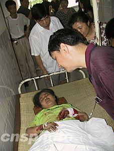 爆竹廠受傷女工羅正蓮在閩侯縣醫院接受救治,其在同廠打工的丈夫下落。中新社記者:劉可耕