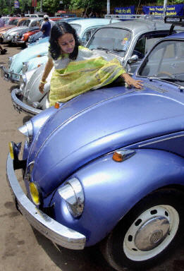 隨著大眾汽車墨西哥普韋布洛廠停止生產大眾原型“甲殼蟲”,這種汽車最終退出了歷史舞臺。圖為孟加拉大眾“甲殼蟲”汽車展。