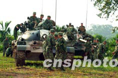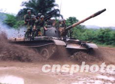 八月的海南五指山區(qū)某裝甲部隊頂著高溫烈日艱苦訓(xùn)練。作者:蔣聚榮