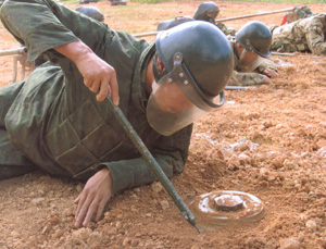根據中國和厄立特里亞兩國政府達成的協議,國務院、中央軍委于2002年底開始,先后兩次派出以成都軍區掃雷專家為主的專家組,赴厄執行國際人道主義援外掃雷任務。期間,中國專家組培訓厄方121名學員,并對4片山地雷場和兩條公路進行了指導性掃雷,共掃除防坦克和防步兵地雷近千枚,掃除雷區面積近20萬平方米。所掃過的雷場經過當地政府驗收,無殘留地雷,未損壞一棵樹木,中厄雙方均無一傷亡,達到了國際掃雷標準。聯合國發展計劃署和掃雷行動合作中心等有關方面的官員到現場觀察掃雷作業后,贊揚中國專家組掃雷質量高、速度快,既環保、又經濟。