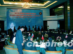 八月五日上午,為期兩天的東盟—湄公河流域開發合作第五次指導委員會在昆明邦克酒店開幕。東盟官員稱,本次會議主要議題是討論有關泛亞鐵路的最新報告。圖為會議現場。作者:納家驊