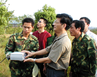 8月4日下午,江西省委書記孟建柱頂著烈日,親臨吉水縣醪橋鄉(xiāng)人工增雨作業(yè)炮點(diǎn)視察、慰問(wèn),指出人工增雨是有益于人民群眾的事業(yè)。16時(shí)50分,醪橋作業(yè)區(qū)出現(xiàn)有利天氣。孟建柱書記親自摁動(dòng)人工增雨作業(yè)火箭發(fā)射按鈕(如圖),一枚增雨火箭彈呼嘯著撲入云層,作業(yè)影響區(qū)隨后普降中雨……(江西省減災(zāi)委員會(huì)辦公室)