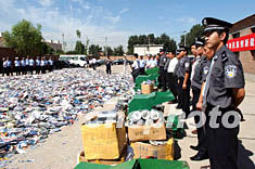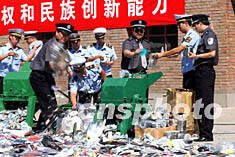 8月12日,“2003中國銷毀走私盜版光盤大行動”分別在全國各地舉行。北京警方會同有關部門公開銷毀非法盜版光盤120萬張。作者:李連杰