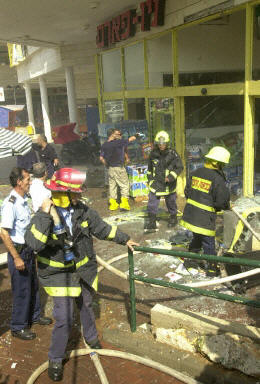 以色列商場爆炸系恐怖襲擊受傷人數(shù)增加至10人 (2003-08-12 15:04:32)