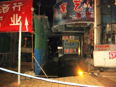 新華網(wǎng)的消息則引述地下工程事故現(xiàn)場目擊者介紹,他們當(dāng)時只聽到轟隆一聲,隨后看到位于花園街和奮斗路交口處的本色演藝迪吧門前塌陷出一個50平方米左右的大坑,幾名路人隨即掉了下去。