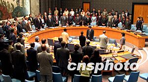 聯(lián)合國安理會二十日晚間舉行緊急會議研究有關聯(lián)合國設施的安全保障問題,與會的安理會成員國代表在會議中起立默哀,悼念十九日發(fā)生在巴格達的炸彈襲擊事件中的遇難者。中新社記者:趙海燕
