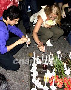 數(shù)百名聯(lián)合國職員以及一些普通民眾二十日晚間自發(fā)在聯(lián)合國總部對面的廣場上舉行燭光追思活動,悼念十九日發(fā)生在巴格達的炸彈襲擊事件中的遇難者。中新社記者:趙海燕