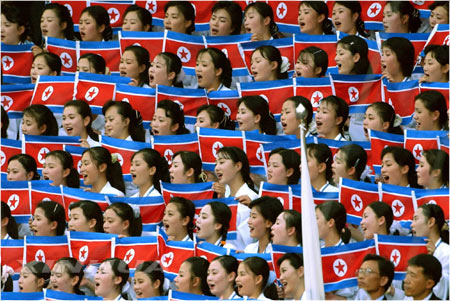 這些姑娘并不是專業的拉拉隊員,她們之中絕大多數從事藝術專業。在大運會期間,她們將為朝鮮隊加油吶喊,并會載歌載舞,表演一些傳統節目”,一位大運會工作人員透露說。此外,拉拉隊員們還將參與兩場公開的演出,預計會引起極大的轟動,這點在釜山時就得到了印證。這群姑娘在大運村的房間為五人一間,房間里原有的電視設備和公用電話應朝鮮方面的要求已經被撤掉,“我們還特地進口了她們那里出產的礦泉水,以保證這些姑娘不會因為水土不服而生病”,一位韓國方面的工作人員這樣描繪她們所受的待遇。