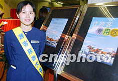香港沙田馬場在八月三十一日新賽季開鑼日,首次開設游客專用區,讓內地自由行游客參與投注獲勁賞。圖為沙田馬場的游客親善大使。中新社記者:潘索菲