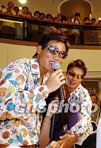 香港歌星蘇永康、許志安,8月31日在海港城為“香港安康演唱會(huì)”宣傳時(shí),與現(xiàn)場(chǎng)歌迷高歌一曲,玩得開心。作者:洪少葵