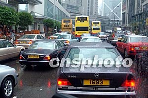 香港天文臺二日下午懸掛八號烈風信號,中環(huán)一帶交通堵塞。中新社記者:錢興強