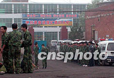九月三日,河南洛陽市伊川縣奮進煤礦大門外戒備森嚴(yán)。該煤礦黃村分井在九月二日突發(fā)透水事故,16名工人被困井下。事故發(fā)生后,當(dāng)?shù)卣S即展開救援,但因困難較大,搶救工作進展緩慢。作者:慎重
