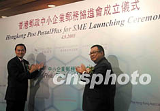 香港郵政四日宣布中小企業(yè)郵務(wù)協(xié)進(jìn)會(huì)正式成立,為中小企提供合乎成本效益的一站式服務(wù)方案,協(xié)助香港三十多萬家中小企解決業(yè)務(wù)上的問題,配合他們?cè)卩]務(wù)、物流、直銷及電子商貿(mào)等方面的需要。香港郵政署長蔣任宏(左)與中小型企業(yè)委員會(huì)主席陳永棋(右)一同主禮。(香港政府新聞處供圖)