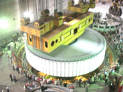 圖文:重達1780噸的三峽四號機組轉子吊裝就位