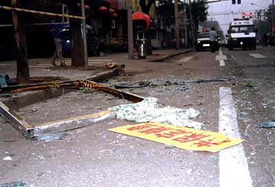 據北京娛樂信報報道,肉餅店臨街的一扇門和三個窗戶全部被炸碎,馬路中間全是炸飛的碎玻璃,并有門窗框被炸飛到馬路對面。酒吧和肉餅店的所有窗戶都被炸壞。