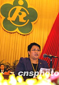 殘疾人國際主席維納斯·伊拉甘,在北京召開的中國殘疾人聯(lián)合會第四次全國代表大會上,向代表們致賀詞,并感謝中國各界為殘疾人所作的大量有效的工作。中新社記者:王麗南