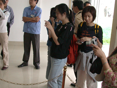 9月9日,來自新華網、人民網、中新網等15家國內知名網站的記者,參觀訪問了中國重汽。圖為記者團的女記者在采訪中。中新社記者 宋方燦攝