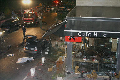 巴以9月9日再次經(jīng)歷血腥的一天。以色列繼續(xù)進(jìn)行定點(diǎn)清除,擊斃了一名哈馬斯地區(qū)領(lǐng)導(dǎo)人。但數(shù)小時(shí)后,以色列特拉維夫一個(gè)軍事基地外就發(fā)生自殺性爆炸,造成至少8人死亡和30人受傷。不久,耶路撒冷西部一家咖啡店也發(fā)生爆炸,已造成7人死亡,大約40人受傷。巴勒斯坦伊斯蘭抵抗運(yùn)動(dòng)哈馬斯宣稱對(duì)這些襲擊負(fù)責(zé)。