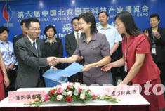 九月十五日,中國北京國際科技博覽會在北京國際會議中心組織了政府采購專場會,已完成政府采購項目招投標的單位與供貨商現場簽約。中新社記者:史利