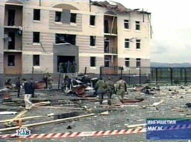 劇烈的爆炸震碎了聯(lián)邦安全局印古什分局大樓所有的窗戶玻璃,三層高的辦公樓受損嚴(yán)重,但并沒(méi)有倒下。俄塔社記者從現(xiàn)場(chǎng)報(bào)道說(shuō),爆炸發(fā)生的時(shí)候,大樓里有至少100人在辦公。美聯(lián)社記者在現(xiàn)場(chǎng)看到至少一名死者的尸體,這具尸體就在那些被炸翻的汽車?yán)铩1òl(fā)生后,數(shù)十名警察迅速趕到,包圍了爆炸現(xiàn)場(chǎng)。
