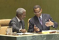 聯合國秘書長安南與圣盧西亞外長朱利安·亨特在第58屆聯大開幕式上