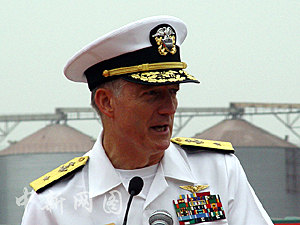 美太平洋艦隊第五航母大隊司令詹姆斯·凱利準(zhǔn)將在湛江港碼頭發(fā)表講話。作者:韓海冰 徐建恩