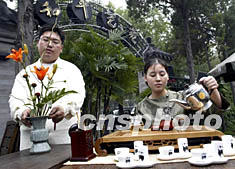 荷蘭國際球根花卉中心24日在北京和平藝苑組織插花技師與茶藝師進行同臺藝術表演,吸引了不少北京市民。中新社記者:趙振清
