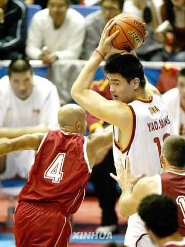 上場(chǎng)二十分鐘既得到“兩雙”的姚明,首次連續(xù)作戰(zhàn),打滿三十五分鐘。