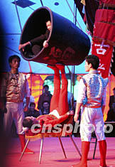 “十一”長假期間中國雜技之鄉吳橋迎來一年中旅游黃金時節。在匯聚各路雜技高手的“雜技大世界”內,一位纖弱女子足蹬二百公斤的重物旋轉表演,令觀眾驚嘆不已。據悉,當地三分之一財富來自雜技旅游收入。中新社記者:王麗南