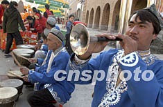圖:維吾爾族樂手助興烏魯木齊商業區