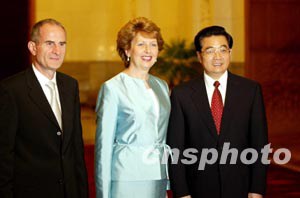 會談前,胡錦濤主席為麥卡利斯總統訪華舉行了歡迎儀式。