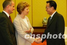 全國人大常委會委員長吳邦國十日在北京會見愛爾蘭總統瑪麗·麥卡利斯。中新社記者:滿會喬