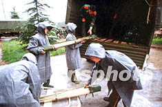近日中國黃河發生罕見黃河秋汛洪災,北京武警部隊后勤基地官兵緊急發運帳篷、發電機等應急保障物資,保證滿足前線抗洪搶險的需要。作者:曹文