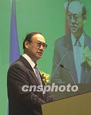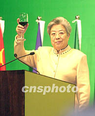 中國(guó)-葡語(yǔ)國(guó)家經(jīng)貿(mào)合作論壇(澳門)十二日在澳門舉行,中國(guó)國(guó)務(wù)院副總理吳儀在中國(guó)商務(wù)部舉行的晚宴上祝酒。中新社記者:李剛