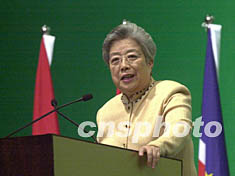中國(guó)-葡語(yǔ)國(guó)家經(jīng)貿(mào)合作論壇(澳門)十二日在澳門舉行,中國(guó)國(guó)務(wù)院副總理吳儀出席中國(guó)商務(wù)部舉行的晚宴并發(fā)表講話。中新社記者:李剛